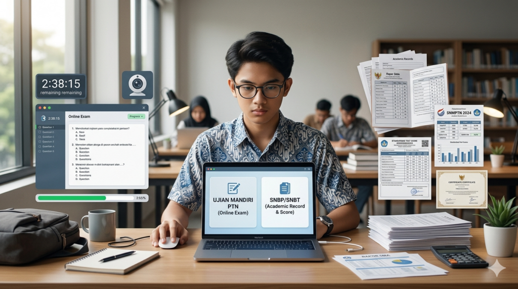 Peserta hanya diperbolehkan memilih satu skema saja, sehingga tahap pendaftaran sangat menentukan strategi seleksi. Pada skema Ujian SMUP & Rapor, peserta mengikuti ujian daring pada 10-11 Juni 2026. Penilaian mengintegrasikan hasil ujian dengan rekam jejak akademik melalui nilai rapor.